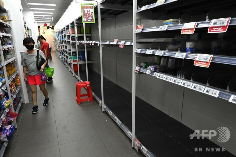 【2月8日 AFP】シンガポール政府が新型コロナウイルスに対する警戒レベルを上から2番目のオレンジへと引き上げたことを受け、同国では8日、パニックに陥った市民がスーパーへと買いだめに走り、生活必需品の商品棚が次々に空になった。これまでにシンガポールの感染者は33人に上っている。