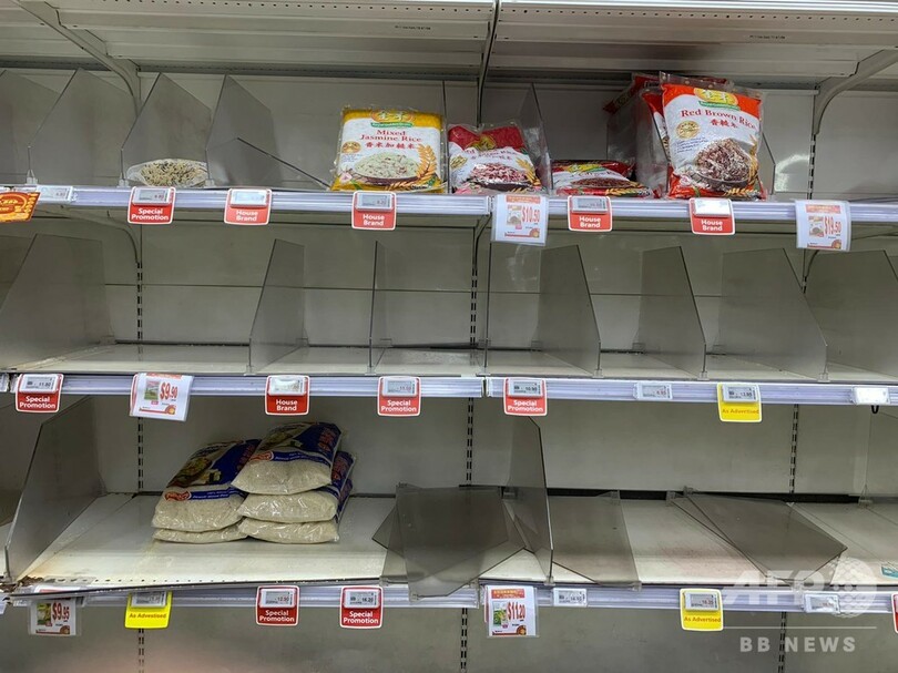 【2月8日 AFP】シンガポール政府が新型コロナウイルスに対する警戒レベルを上から2番目のオレンジへと引き上げたことを受け、同国では8日、パニックに陥った市民がスーパーへと買いだめに走り、生活必需品の商品棚が次々に空になった。これまでにシンガポールの感染者は33人に上っている。