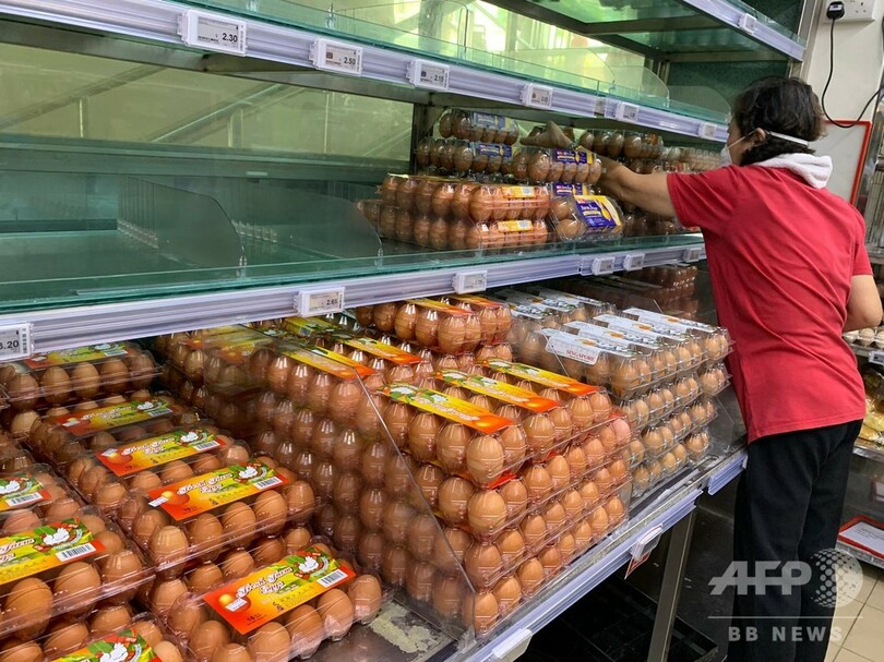 政府は国民に冷静を呼び掛け、チャン・チュンシン(Chan Chun Sing)貿易産業相は「主要な食料品や必需品が不足する恐れはない」とフェイスブック(Facebook)に投稿し、買いだめに走る必要はないと訴えた。(c)AFP