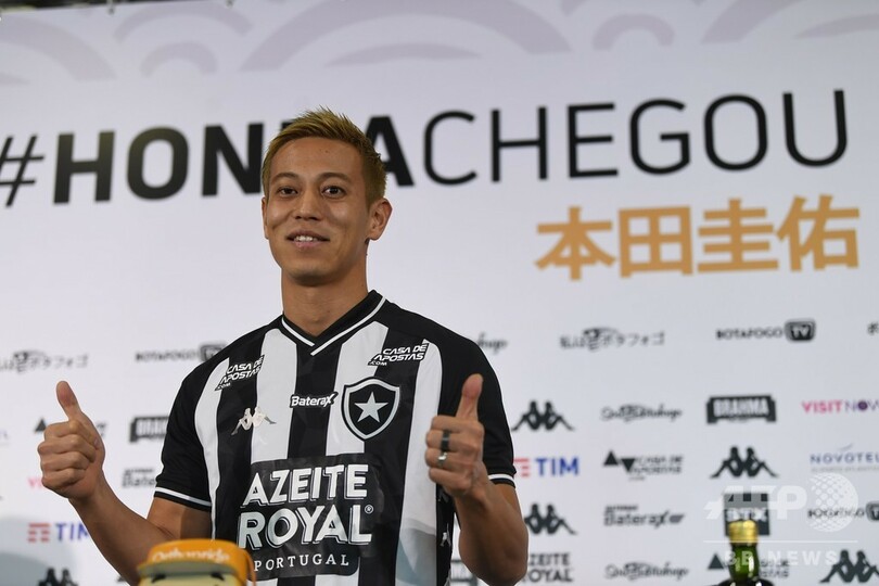 【2月9日 AFP】カンピオナート・ブラジレイロ(ブラジル全国選手権)1部のボタフォゴFR(Botafogo FR)に加入したサッカー元日本代表MFの本田圭佑(Keisuke Honda)が8日、クラブの本拠地ニウトン・サントス・スタジアム(Estadio Nilton Santos)で入団発表会に臨み、サポーターからの歓迎を受けた。(c)AFP