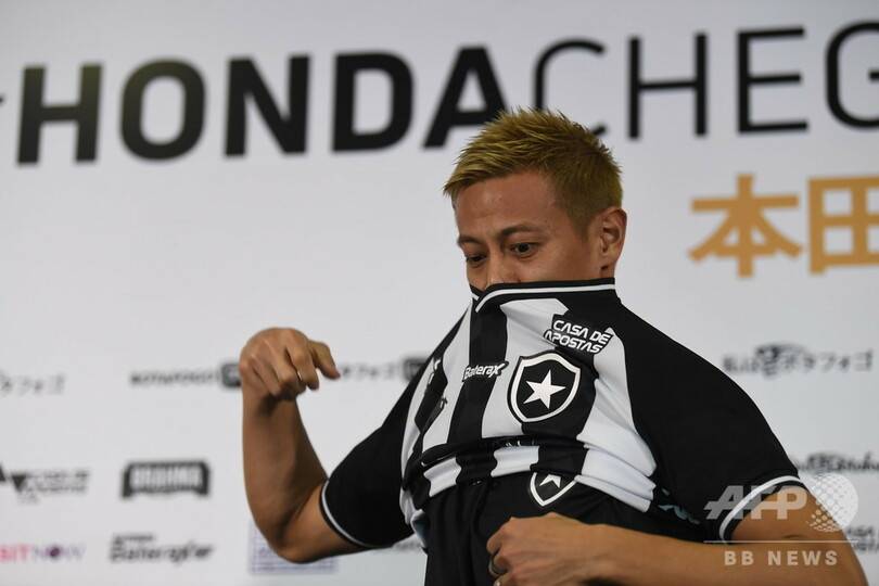 【2月9日 AFP】カンピオナート・ブラジレイロ(ブラジル全国選手権)1部のボタフォゴFR(Botafogo FR)に加入したサッカー元日本代表MFの本田圭佑(Keisuke Honda)が8日、クラブの本拠地ニウトン・サントス・スタジアム(Estadio Nilton Santos)で入団発表会に臨み、サポーターからの歓迎を受けた。(c)AFP