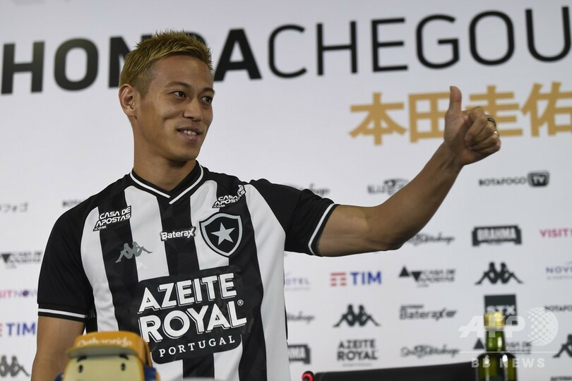 【2月9日 AFP】カンピオナート・ブラジレイロ(ブラジル全国選手権)1部のボタフォゴFR(Botafogo FR)に加入したサッカー元日本代表MFの本田圭佑(Keisuke Honda)が8日、クラブの本拠地ニウトン・サントス・スタジアム(Estadio Nilton Santos)で入団発表会に臨み、サポーターからの歓迎を受けた。(c)AFP