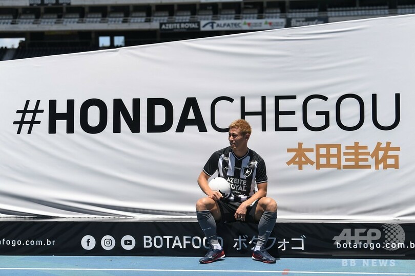 【2月9日 AFP】カンピオナート・ブラジレイロ(ブラジル全国選手権)1部のボタフォゴFR(Botafogo FR)に加入したサッカー元日本代表MFの本田圭佑(Keisuke Honda)が8日、クラブの本拠地ニウトン・サントス・スタジアム(Estadio Nilton Santos)で入団発表会に臨み、サポーターからの歓迎を受けた。(c)AFP