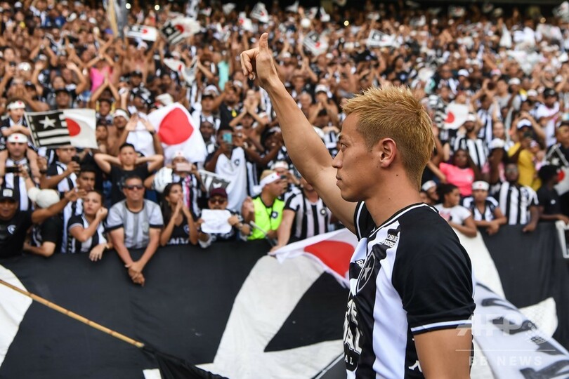 【2月9日 AFP】カンピオナート・ブラジレイロ(ブラジル全国選手権)1部のボタフォゴFR(Botafogo FR)に加入したサッカー元日本代表MFの本田圭佑(Keisuke Honda)が8日、クラブの本拠地ニウトン・サントス・スタジアム(Estadio Nilton Santos)で入団発表会に臨み、サポーターからの歓迎を受けた。(c)AFP