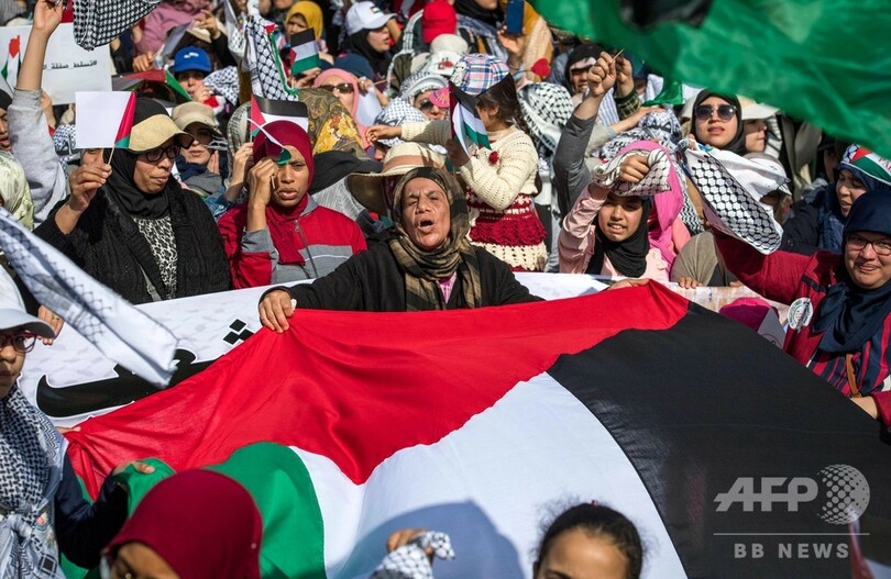同日、モロッコの首都ラバトでは米和平案に抗議する大規模デモが行われ、政治家や労働組合などを含む数千人が通りを埋め尽くした。