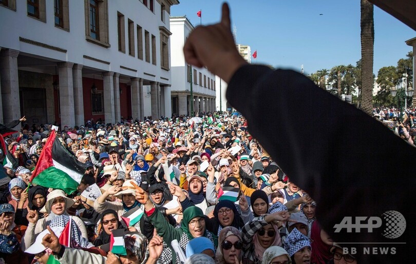 同日、モロッコの首都ラバトでは米和平案に抗議する大規模デモが行われ、政治家や労働組合などを含む数千人が通りを埋め尽くした。