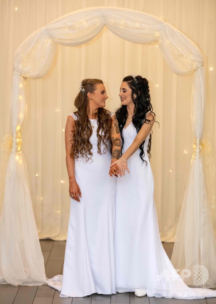 10日の新法施行を受け、ロビン・ピープルズ(Robyn Peoples)さん(26)とシャーニ・エドワーズ(Sharni Edwards)さん(27)は11日午後、ベルファスト近郊キャリックファーガス(Carrickfergus)のホテルで結婚式を挙げた。