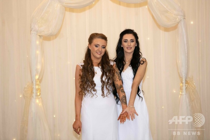 10日の新法施行を受け、ロビン・ピープルズ(Robyn Peoples)さん(26)とシャーニ・エドワーズ(Sharni Edwards)さん(27)は11日午後、ベルファスト近郊キャリックファーガス(Carrickfergus)のホテルで結婚式を挙げた。