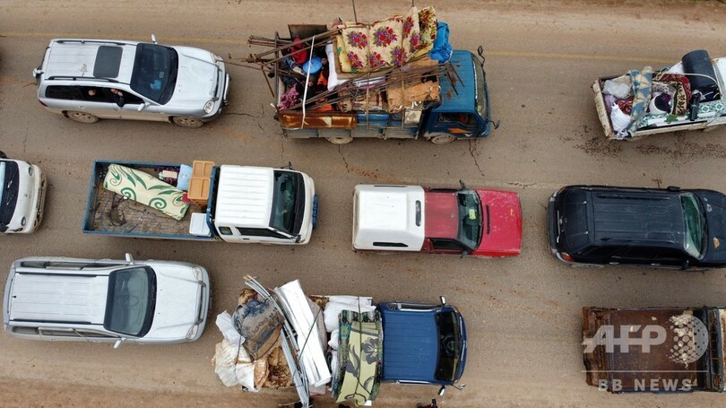 マットレスを積み上げたトラックに乗った家族の車列は果てしなく続く。折しも厳しい冬で、一部地域では氷点下まで冷え込み、降雪も観測されているため、深刻な人道危機となる懸念が高まっている。国連は、避難所問題の早急な解決を求めている。