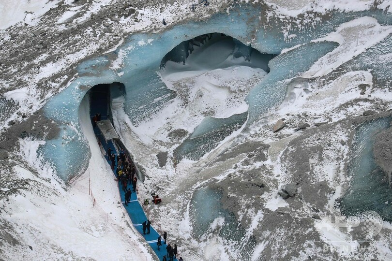 2022年仏大統領選に向け、環境保護政策で実績をアピールしたいマクロン氏は、仏最高峰モンブラン(Mont Blanc)のふもとの町シャモニー(Chamonix)を訪れ、メール・ド・グラース(Mer de Glace)氷河をじかに視察した。この氷河は毎年8~10メートルずつ後退しており、1850年当時と比べると2キロも短くなっている。
