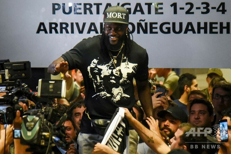 これまでスペイン1部リーグのレアル・マドリード(Real Madrid)やイングランド・プレミアリーグのマンチェスター・シティ(Manchester City)でプレーしたアデバヨールは、レアル時代のニックネーム「マノリート」のチャントをファンから受けると、クラブカラーがほどこされ、「私はもうここにいる」と記されたバナーを広げた。
