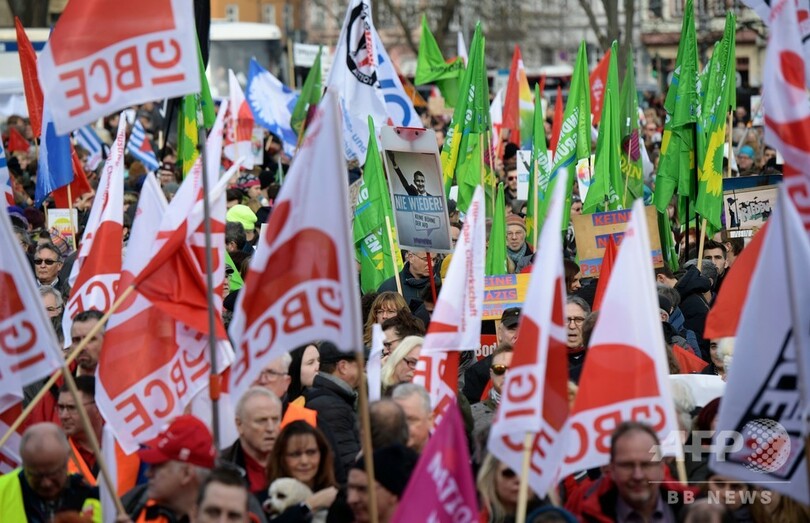 極右政党の支持による選挙勝利に抗議、ドイツで1万8000人がデモ