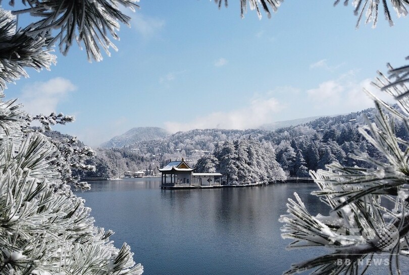 【2月23日 CNS】中国・江西省(Jiangxi)の廬山(Lushan Mountain)は、その風光明媚(めいび)な景色で全国に名をはせる。雪が過ぎ去った16日には、青い空に白い霧氷が映え、銀色の世界になった。(c)CNS/JCM/AFPBB News