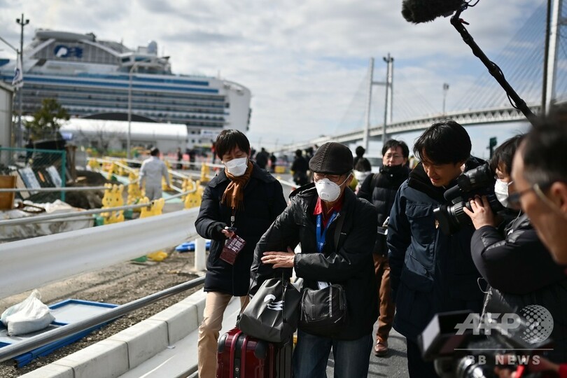 【2月19日 AFP】(更新、写真追加)新型コロナウイルスの集団感染が確認され、横浜港で検疫下に置かれていたクルーズ船「ダイヤモンド・プリンセス(Diamond Princess)」で19日、船内に残っていた乗客の下船が始まった。ただ厚生労働省は同日夜、乗船者の中からさらに79人の感染が判明したと発表した。