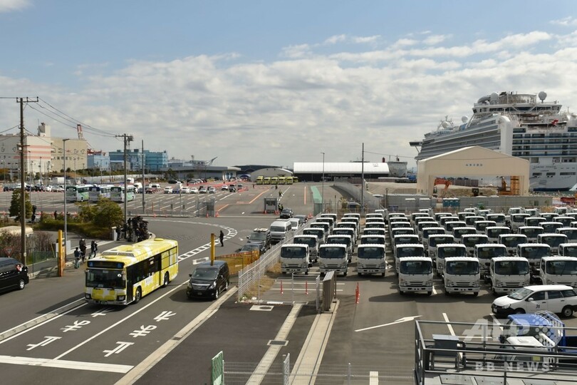 【2月19日 AFP】(更新、写真追加)新型コロナウイルスの集団感染が確認され、横浜港で検疫下に置かれていたクルーズ船「ダイヤモンド・プリンセス(Diamond Princess)」で19日、船内に残っていた乗客の下船が始まった。ただ厚生労働省は同日夜、乗船者の中からさらに79人の感染が判明したと発表した。