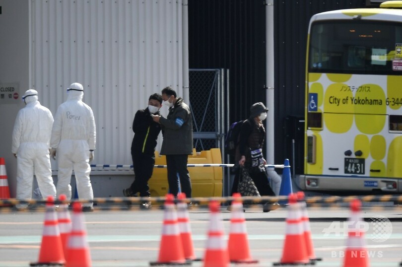 【2月19日 AFP】(更新、写真追加)新型コロナウイルスの集団感染が確認され、横浜港で検疫下に置かれていたクルーズ船「ダイヤモンド・プリンセス(Diamond Princess)」で19日、船内に残っていた乗客の下船が始まった。ただ厚生労働省は同日夜、乗船者の中からさらに79人の感染が判明したと発表した。