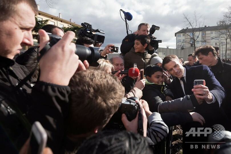 しかし、マクロン氏が演説前に現地視察を行った際、赤紫色のニカブを身に着けた若い女性が、人混みをかき分けて警察官に警護されたマクロン氏に接近。女性がベールをめくると、マクロン氏はいつものように満面の笑みで自撮りに応じた。この場面はカメラで撮影され、直後にソーシャルメディアに投稿された。