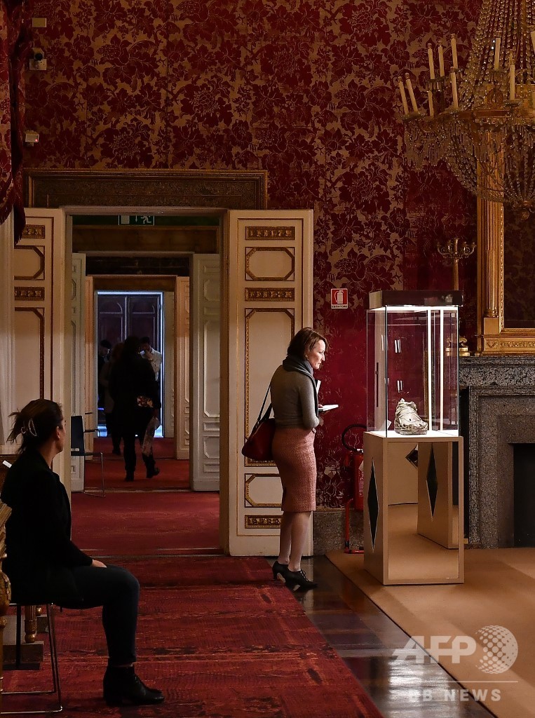キュレーターの一人、ファブリツィオ・パオルッチ(Fabrizio Paolucci)氏はAFPに対し、「古来から単なるアクセサリー以上の存在とみなされていた靴を、展示の主役にすることを意図した」と語った。展覧会は4月19日まで開催される。(c)AFP/Alexandria SAGE