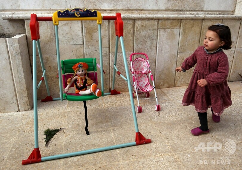 【2月20日 AFP】シリア反体制派の最終拠点となっている北西部イドリブ(Idlib)県では、内戦から逃れることなど到底不可能だ。そこでアブドラ・ムハンマド(Abdullah al-Mohammed)さん(32)が娘のサルワ(Salwa)ちゃん(3)を安心させるために見つけた唯一の手段は、爆撃をゲームに変えることだった。