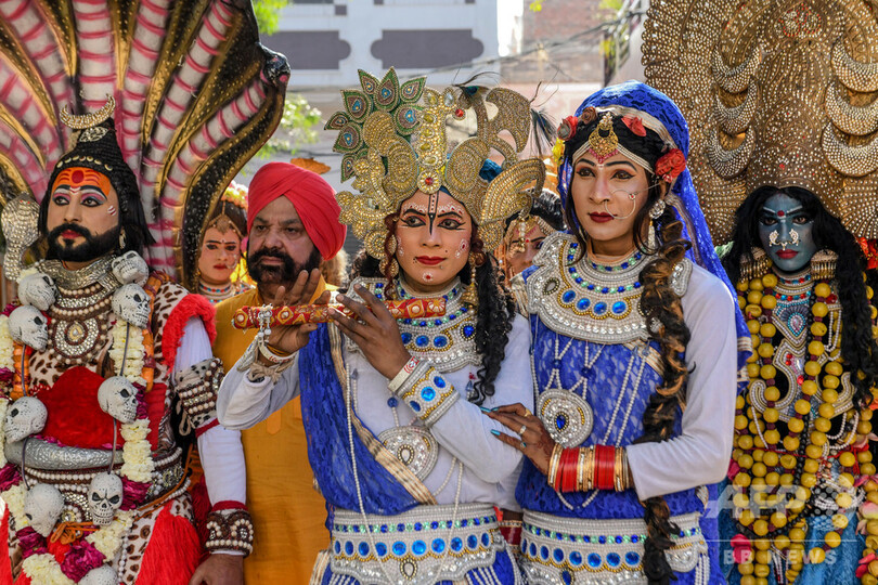【2月23日 AFP】インド北部で21日、ヒンズー教のシバ神(Lord Shiva)の生誕を祝う祭り「マハ・シバラトリ(Maha Shivaratri)」が行われた。アムリツァル(Amritsar)では色鮮やかな化粧と衣装で神に扮(ふん)した人々が練り歩き、アラハバード(Allahabad)では人骨を携えた参加者もみられた。(c)AFP