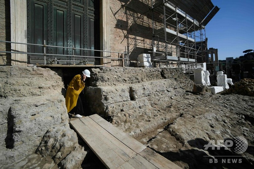 発掘を担当するパトリツィア・フォルティーニ(Patrizia Fortini)氏はAFPに対し、「それは、フォロ一帯にロムルスの墓が実在するとした古代の情報源に基づく仮説でしかない」と述べ、「重要な遺跡であることは確かだ。ひつぎの形は、追悼の場となる記念物を連想させるが、実際に何だったのかは分からない」と語った。(c)AFP/Franck IOVENE