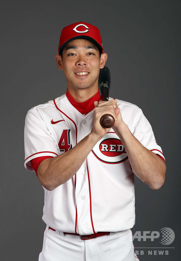 【2月22日 AFP】米大リーグ(MLB)のシンシナティ・レッズ(Cincinnati Reds)に移籍した秋山翔吾(Shogo Akiyama)が、キャンプ地の米アリゾナ州グッドイヤー(Goodyear)でメディア向けのフォトデーに参加した。(c)AFP
