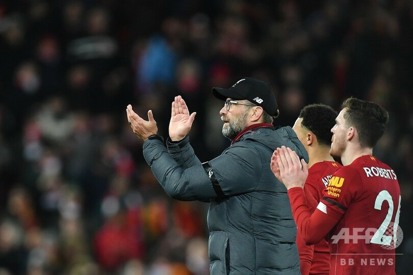 残り11試合で4勝すれば1990年以来のリーグ優勝が決まるリバプールは、現在プレミアリーグで44試合連続で負けなしとなっており、アーセナル(Arsenal)が保持する無敗記録49試合にあと5と迫っている。(c)AFP/Steven GRIFFITHS