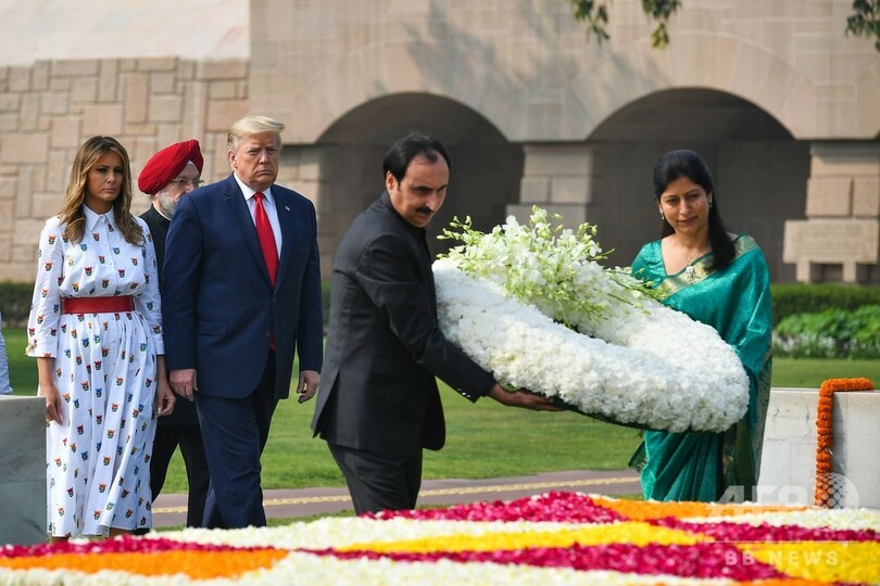 【2月25日 AFP】インドを公式訪問中のドナルド・トランプ(Donald Trump)米大統領と妻のメラニア(Melania Trump)夫人は25日、首都ニューデリーで、インド独立の象徴的存在マハトマ・ガンジー(Mahatma Gandhi)の慰霊碑がある「ラージガート(Raj Ghat)」を訪問した。