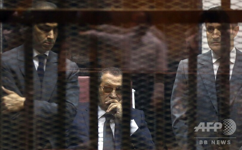 その後ムバラク氏は、2011年の抗議デモ参加者らの死亡事件や汚職など、複数の罪に問われた。裁判と法的手続きは何年にも及んだが、最終的には大半の訴えで無罪となった。(c)AFP