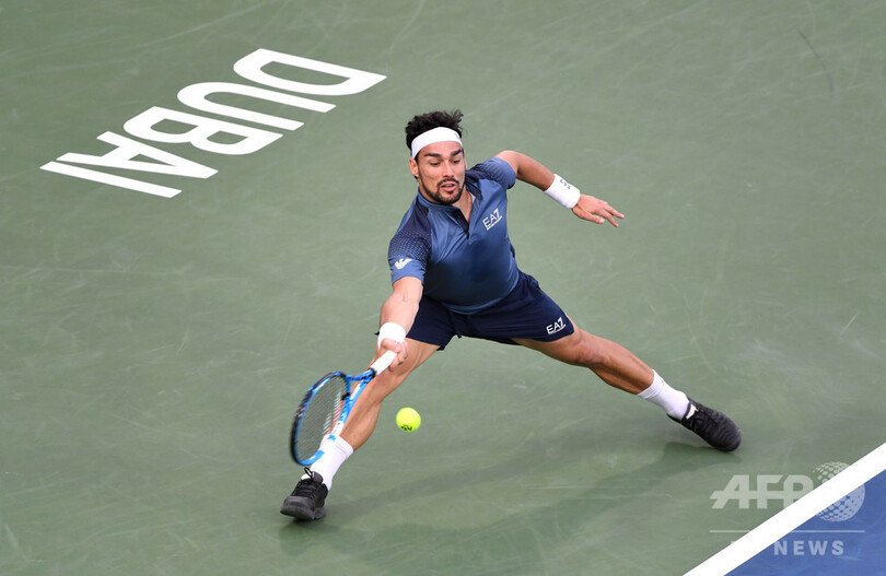 また、初出場となるドバイ選手権で第4シードにつけていたファビオ・フォニーニ(Fabio Fognini、イタリア)は、ダニエル・エヴァンス(Daniel Evans、英国)に6-3、4-6、5-7で敗れ、初戦で姿を消した。(c)AFP/Bill Scott