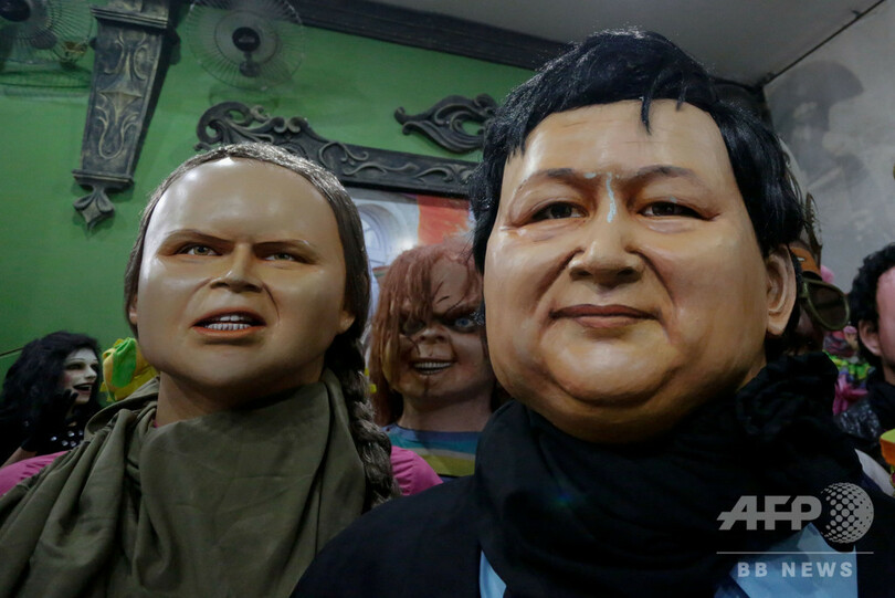 ほかにも、同国のジャイル・ボルソナロ(Jair Bolsonaro)大統領、ドナルド・トランプ(Donald Trump)米大統領、中国の習近平(Xi Jinping)国家主席、スウェーデンの環境活動家グレタ・トゥンベリ(Greta Thunberg)さん、米歌手の故マイケル・ジャクソン(Michael Jackson)さん、英歌手の故デヴィッド・ボウイ(David Bowie)さんといった国際的な著名人の人形が披露された。(c)AFP