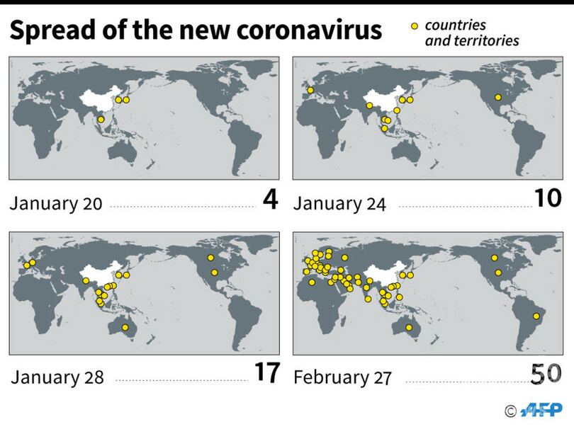 新型ウイルスによる死者の数は世界ですでに2760人を超え、感染者数は45を超える国で8万1000人余りとなっている。ウイルスによる死者の大半は、昨年12月に最初の感染者が出た中国国内の患者。ただ1日当たりの新たな感染者の数は現在、中国よりも中国国外の方が多く、保健インフラの整っていない貧困国が対処できないとの懸念が高まっている。