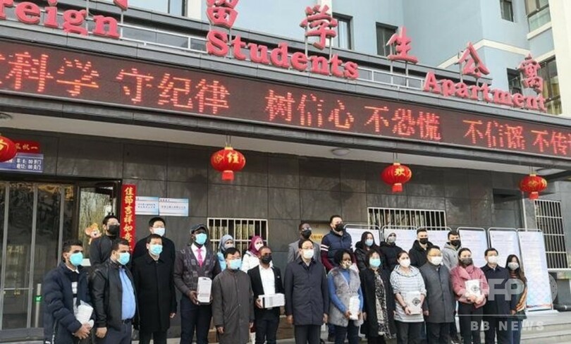 2月13日の段階で、甘粛省には910人の外国人留学生と61人の外国人教師が滞在し、1638人の留学生と134人の外国人教師が学校を離れている。(c)CNS/JCM/AFPBB News