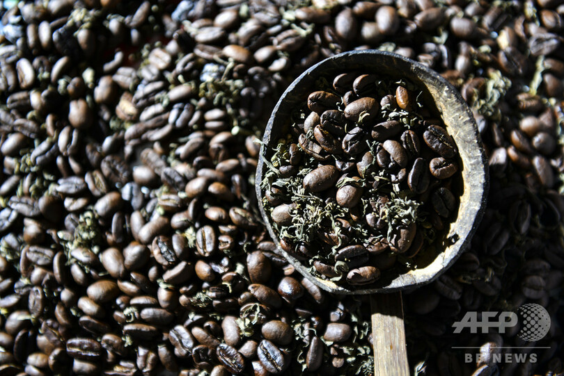 【3月29日 AFP】アグスさん(匿名)は中華鍋にちゅうちょなく木製のへらを入れ、コーヒーとマリフアナ(大麻)をうまく交ぜ合わせながらローストする。