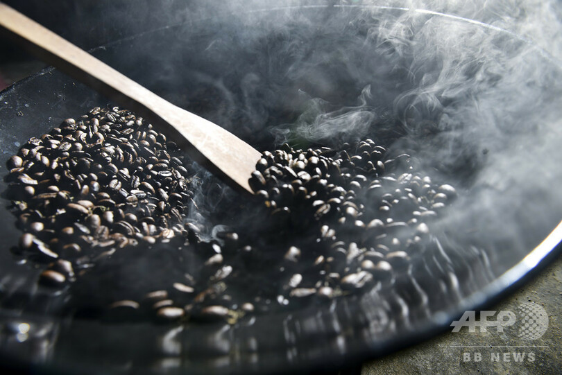 【3月29日 AFP】アグスさん(匿名)は中華鍋にちゅうちょなく木製のへらを入れ、コーヒーとマリフアナ(大麻)をうまく交ぜ合わせながらローストする。