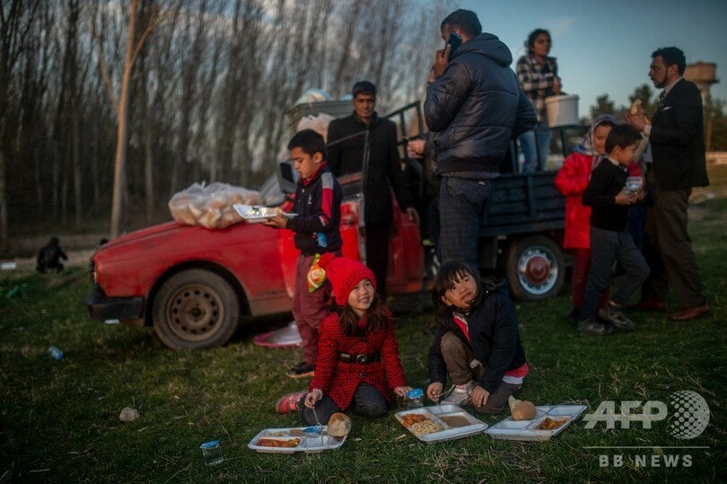 その間、シリア政権軍の攻撃により、過去9年間のシリア内戦でも最大級の100万人近い避難民が発生しているが、トルコへの入国は許可されていない。(c)AFP/Gokan GUNES