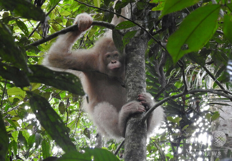 自然に返されたアルビノのオランウータン、生存確認 インドネシア