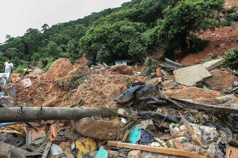数時間で1か月分の降水量に達した地域もあり、サンパウロ州南部沿岸や、同国第2の都市リオデジャネイロ郊外の貧困地区に壊滅的な被害をもたらした。(c)AFP