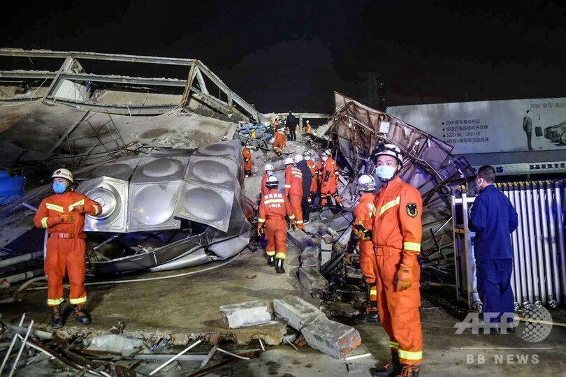 【3月7日 AFP】(写真追加)中国東部の福建(Fujian)省で7日、ホテルが倒壊する事故が発生し、70人前後が閉じ込められた。当局が明らかにした。