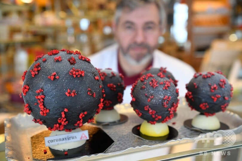 【3月8日 AFP】フランス西部ランディビジオ(Landivisiau)に、新型コロナウイルスの形をしたイースターエッグが登場した。作ったのは、チョコレート職人(ショコラティエ)のジャンフランソワ・プレ(Jean-Francois Pre)さん。ホワイトチョコレートを黒く、アーモンドを赤く着色して作ったという。(c)AFP