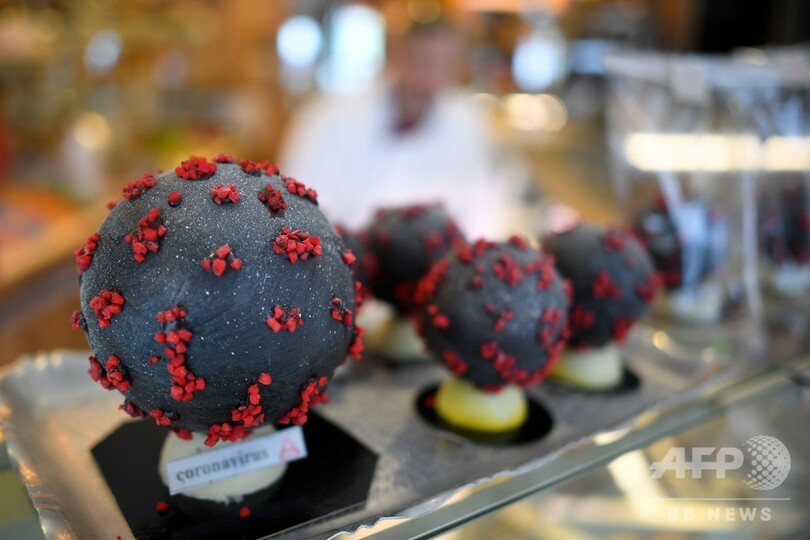 【3月8日 AFP】フランス西部ランディビジオ(Landivisiau)に、新型コロナウイルスの形をしたイースターエッグが登場した。作ったのは、チョコレート職人(ショコラティエ)のジャンフランソワ・プレ(Jean-Francois Pre)さん。ホワイトチョコレートを黒く、アーモンドを赤く着色して作ったという。(c)AFP