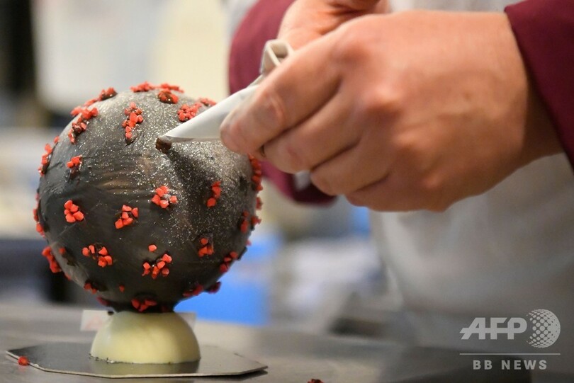【3月8日 AFP】フランス西部ランディビジオ(Landivisiau)に、新型コロナウイルスの形をしたイースターエッグが登場した。作ったのは、チョコレート職人(ショコラティエ)のジャンフランソワ・プレ(Jean-Francois Pre)さん。ホワイトチョコレートを黒く、アーモンドを赤く着色して作ったという。(c)AFP
