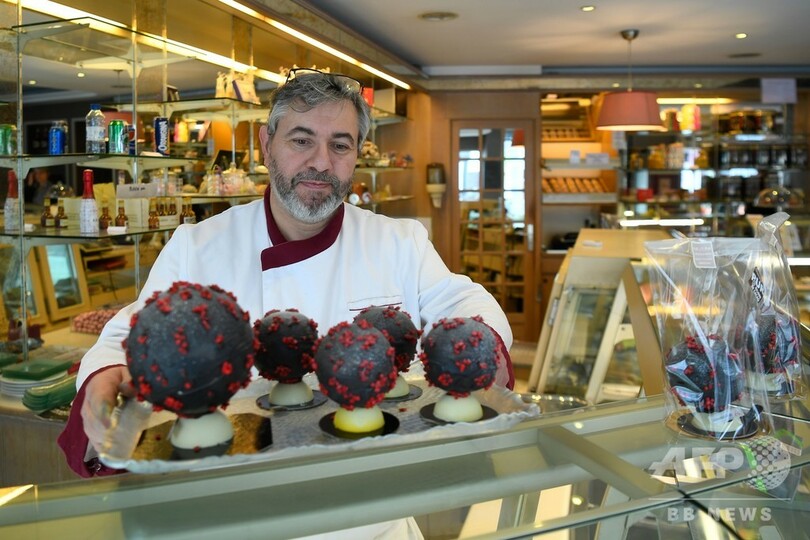【3月8日 AFP】フランス西部ランディビジオ(Landivisiau)に、新型コロナウイルスの形をしたイースターエッグが登場した。作ったのは、チョコレート職人(ショコラティエ)のジャンフランソワ・プレ(Jean-Francois Pre)さん。ホワイトチョコレートを黒く、アーモンドを赤く着色して作ったという。(c)AFP
