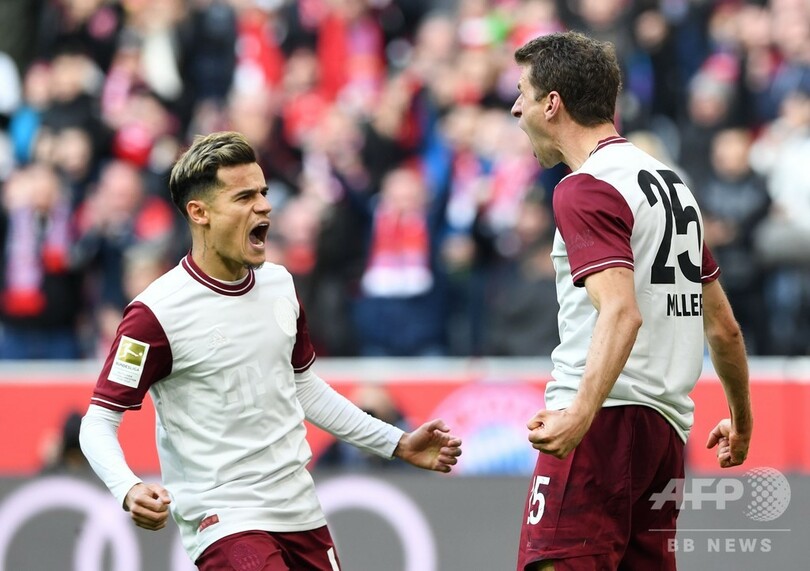 リーグ戦の直近3試合で13ゴールを挙げていたバイエルンは、前半こそ流れるようなプレーを欠いたが、後半にはトーマス・ミュラー(Thomas Muller)とレオン・ゴレツカ(Leon Goretzka)に得点が生まれ、リーグ8連覇にまた一歩近づいた。