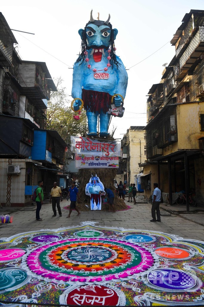 【3月10日 AFP】インド・ムンバイにこのほど、コロナウイルスの悪魔「コロナスル」の人形が登場した。コロナスルは、ヒンズー教の春の祭典「ホーリー(Holi)」の前夜祭「ホリカ・ダハン(Holika Dahan)」のかがり火で燃やされる予定。(c)AFP