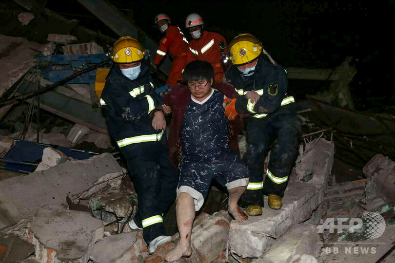 中国応急管理省の10日の記者会見によると、がれきの下からこれまでに41人が救出され、全員がけがをしているという。
