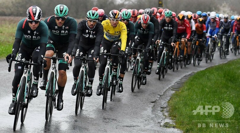 雨風にさらされたこの日のレースでは、ゴール前のクラッシュで混乱が生じる中、素早い反応を見せたガルシア・コルティナとボーラ・ハンスグローエのペーター・サガン(Peter Sagan、スロバキア)がそれぞれ1位と2位でフィニッシュした。24歳の新鋭ガルシア・コルティナは、自転車ロードレース界の最高給選手を2位に抑えたことについて、「ペーター・サガンに勝てたなんて驚き」と語った。(c)AFP