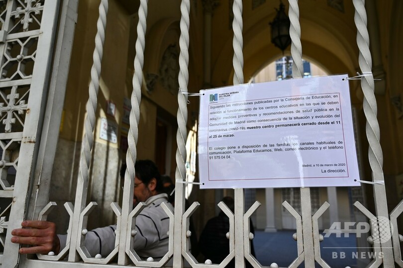 スペインの感染者がわずか48時間で3倍に増えたことを受けて、首都があるマドリード(Madrid)州は11日から約2週間、保育園から大学まで一斉休校とする措置を取った。150万人の児童や生徒、学生が影響を受けるとされる。