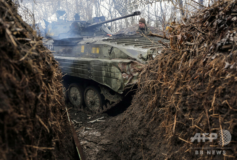 【3月17日 AFP】ウクライナ・ドネツク(Donetsk)のクラスノゴリウカ(Krasnogorivka)近郊で、塹壕(ざんごう)に身を潜め、休息を取るウクライナ兵を見下ろす猫。同地はウクライナ政府軍と親ロシア派武装勢力が対峙(たいじ)する前線地帯。同国東部で続くウクライナ政府軍と親ロ派武装勢力の紛争では、最近の数週間で2番目の「深刻化」状態にあり、3月10日にウクライナ兵2人が死亡、9人が負傷した。(c)AFP