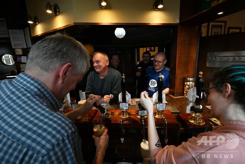 試合開始前にサポーターの集まるパブを訪れたハリファクスファンの男性は「なんだか現実感がないね」「試合の予定表を見ていても、欧州の各国で延期や中止が決まっている」「その中で、ナショナルリーグやいくつかのリーグがまだやっているのを見るのは、ずいぶん妙な感じだよ」と話した。(c)AFP/Steven GRIFFITHS